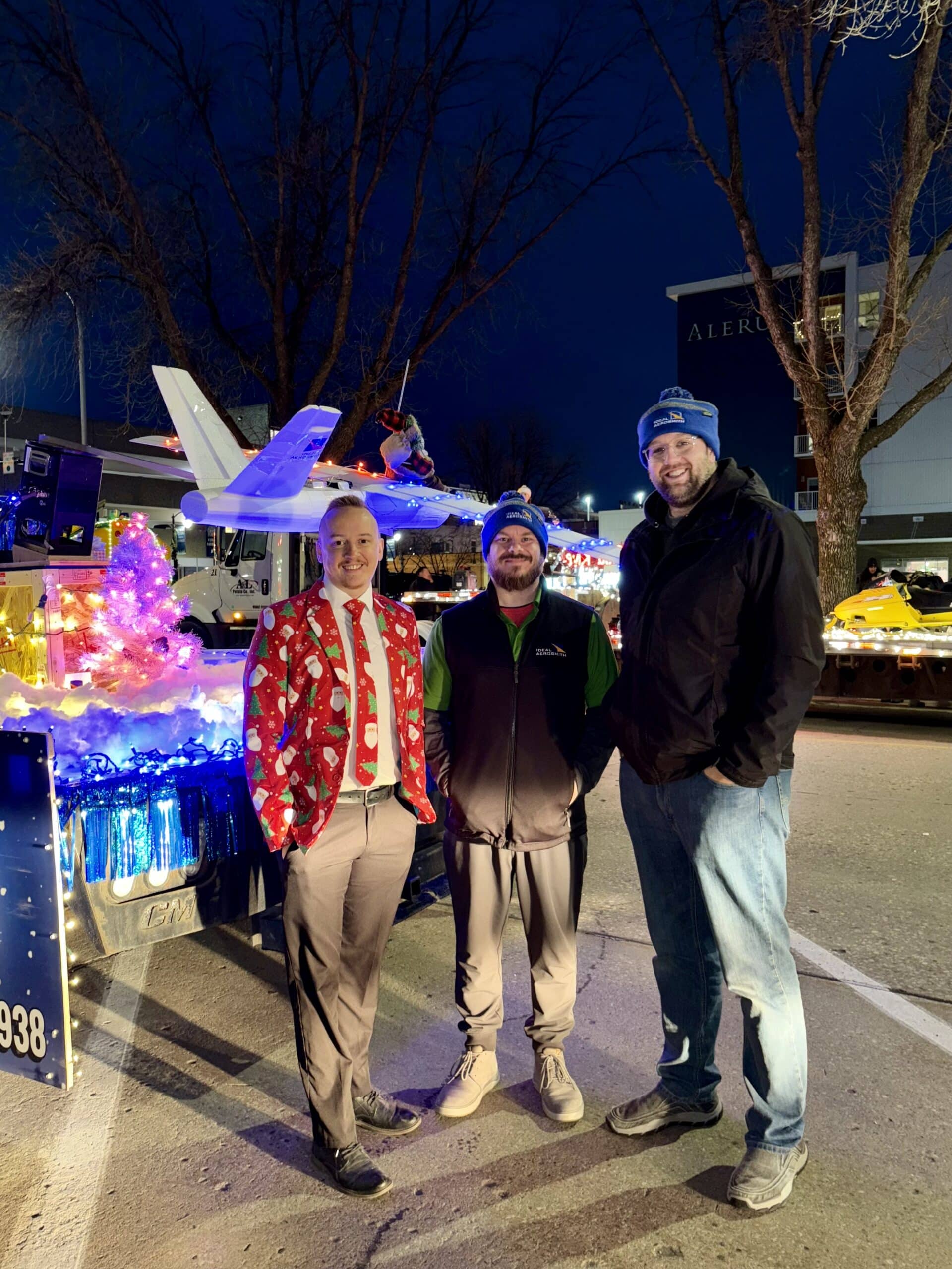 This Winter, Ideal Aerosmith had the joy of participating in the HollyDazzle Parade, a festive event that celebrates the holiday season in Grand Forks. Our team was proud to be the second float, joining the parade alongside other local businesses, community groups, and organizations to share holiday cheer with the community.